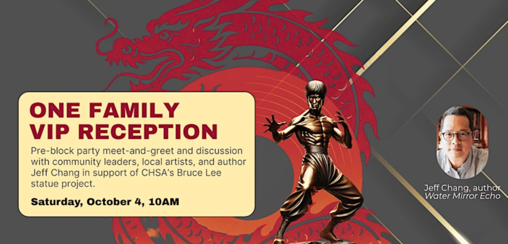 In support of its ONE FAMILY BLOCK PARTY, CHSA will be hosting an exclusive VIP reception at the museum featuring a dynamic presentation of solidarity, unity, and safety with community leaders, local artists, and author Jeff Chang, whose upcoming book Water Mirror Echo explores the legacy of Bruce Lee and his trailblazing career bridging communities.